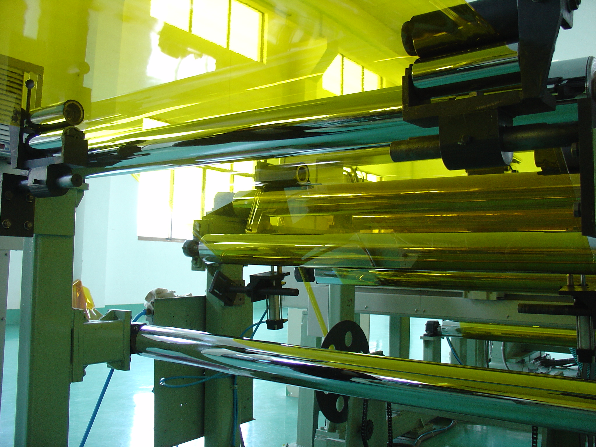 It is composed of resin synthesis, casting, biaxially stretching, pulling, winding, cutting, post-treatment,automatic control system etc. .It is used to produce biaxially oriented stretching polyimide (BOPI) films with excellent electrical properties, good heat resistance, cold resistance and dimensional stability in various specifications of F and H insulation grades.BOPI film as the performance of insulation materials, widely used in locomotive traction motor, nuclear energy, aerospace and marine motor, high temperature resistant cable, with the development of high and new technology industry, has become a space, rocket technology, FCCL of flexible copper clad laminates, flexible OLED display, 5G, wearable devices in areas such as the ideal supporting material.