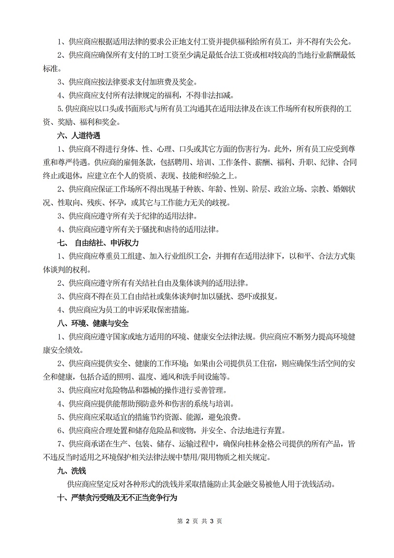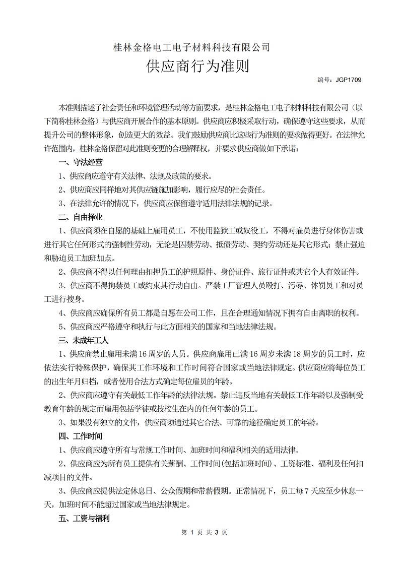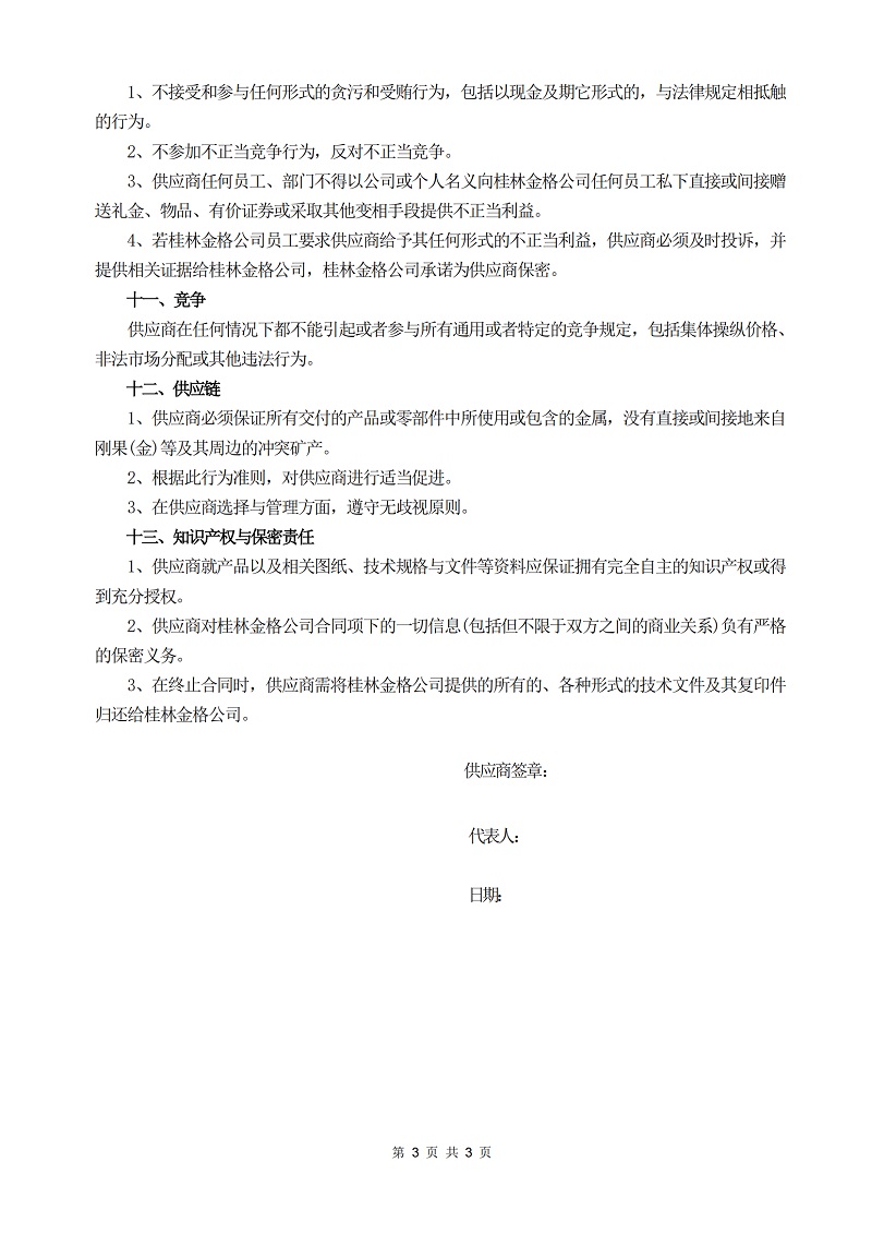 桂林金格供应商行为准则