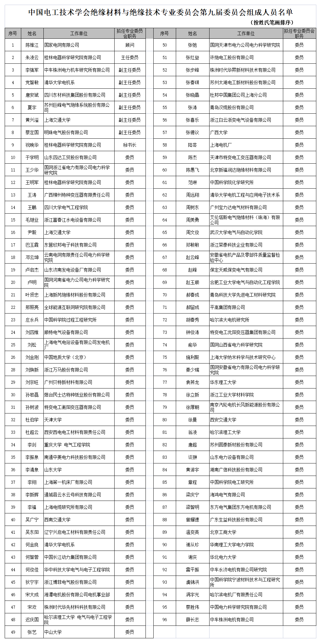 中国电工技术学会绝缘材料与绝缘技术专委会第九届委员会