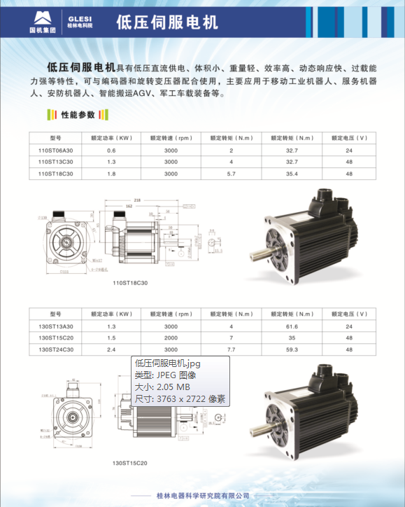 低压伺服电机具有低压直流供电、体积小、重量轻、效率高、动态响应快、过载能力强等特性,可与编码器和旋转变压器配合使用,主要应用于移动工业机器人、服务机器人、安防机器人、智能搬运AGV、军工车载装备等。